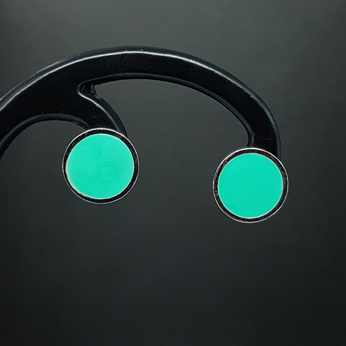Enkle øreringe (ørestikker) i mintgrøn med sølv kant. 1 par.